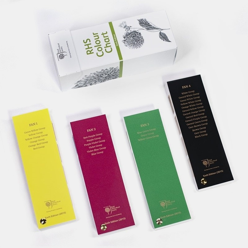 - RHS比色卡是鑒定花棄顏色的參考標準。自1966年首次出版以來,比色卡用來準確識別和描述植物顏色,獲皇家園藝協會(RHS)、園藝工作者、登記機關和專業組織如國際植物新品種保護聯盟(UPOV)等廣泛使用